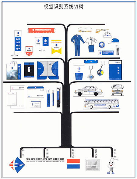西安光机所的标准色以蓝、红两色为主,以黑色为辅。蓝色象征着科技及辽阔的天际,也象征着冷静与理性的思索,红色则代表着科技工作者开拓创新、上下求索的热情与执着。