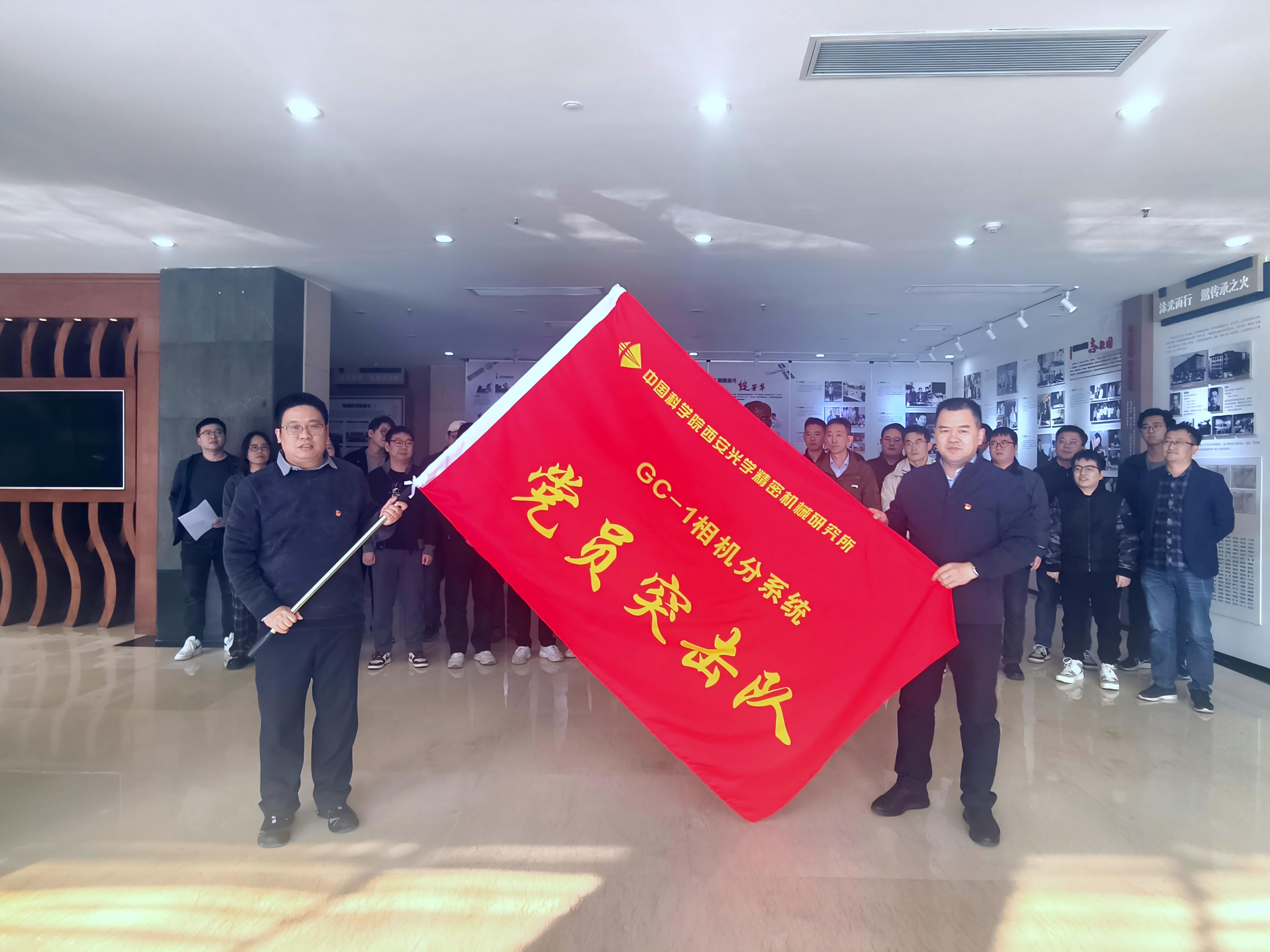 10月27日,GC-1相机分系统临时党支部在祖同楼一楼举行发射任务党员突击队、试验队授旗仪式。参加授旗仪式的有党委书记、副所长郝伟,党群工作处、空天技术处相关同志及GC-1项目组核心成员,活动由空天技术处处长王锋主持。