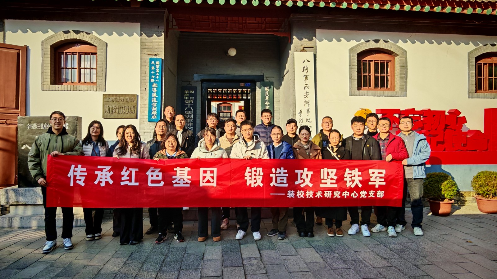 为深入传承红色革命精神,凝聚科研攻坚强大力量,11月21日下午,装校技术研究中心党支部组织全体党员前往八路军办事处旧址开展“传承红色基因 锻造攻坚铁军”主题党日活动,在红色教育中汲取奋进力量,筑牢攻坚信念。