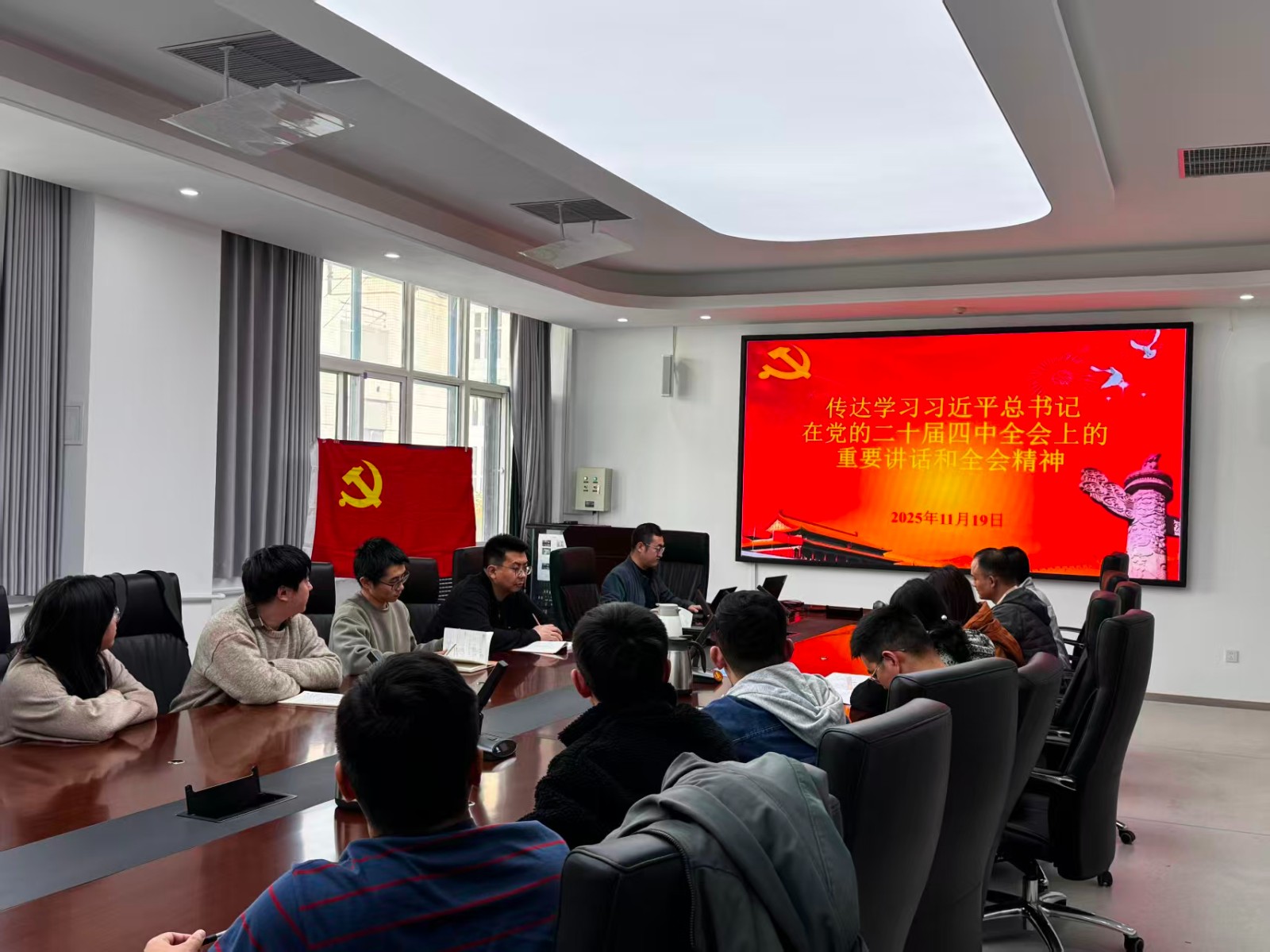 11月19日,热控技术研究室与先进制造部办公室联合党支部召开专题学习会,传达学习党的二十届四中全会精神。会议由党支部书记王晨洁主持。