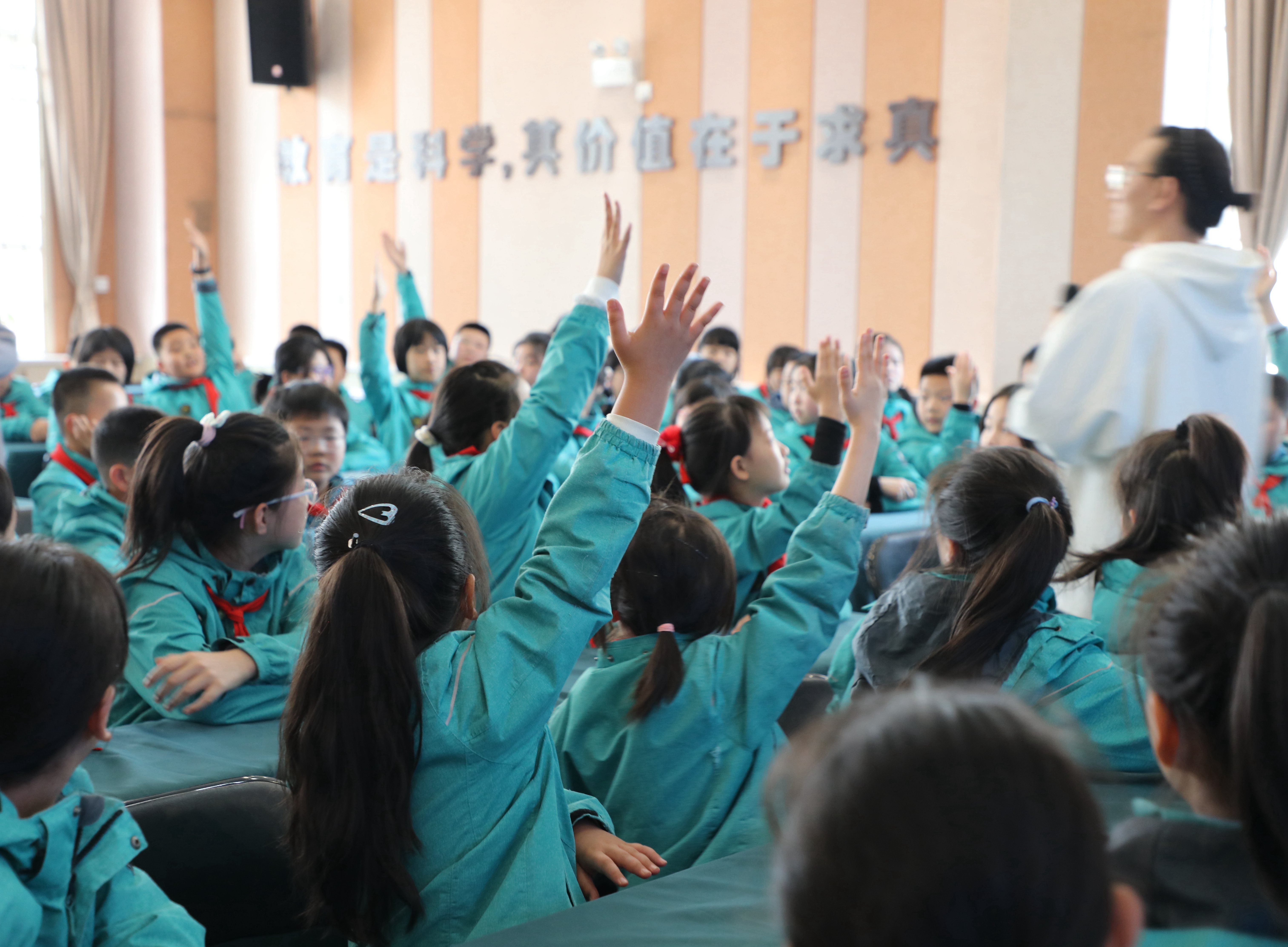 下午两点,课程正式开始,授课教师是西安光机所“循光”科普团团长刘一鸣。刘老师以四年级已学课文《蝙蝠和雷达》开篇,融入大量科学实验案例,采用多媒体教学、现场实验等方式,结合孩子们生活中常见的情景和实物,将“雷达”这项高科技技术,以通俗易懂的语言讲述给大家。现场互动频繁,孩子们的热情也十分高涨,有的提出了课堂疑问、有的提出了未来技术,甚至还有同学提出了世界和平问题,那一只只高举的小手,都在积极传递着少年对科学知识的好奇和渴望。40分钟的课程很快就结束了,孩子们的热情没有终点,有的因为没有被挑中回答问题而遗憾,有的特地留在最后与刘老师进一步探讨,这番情景,正是当代青少年该有的模样。“少年强则国强”,相信不久的将来,他们都会在不同的岗位为建设更美好的祖国挥洒青春、建功立业。
