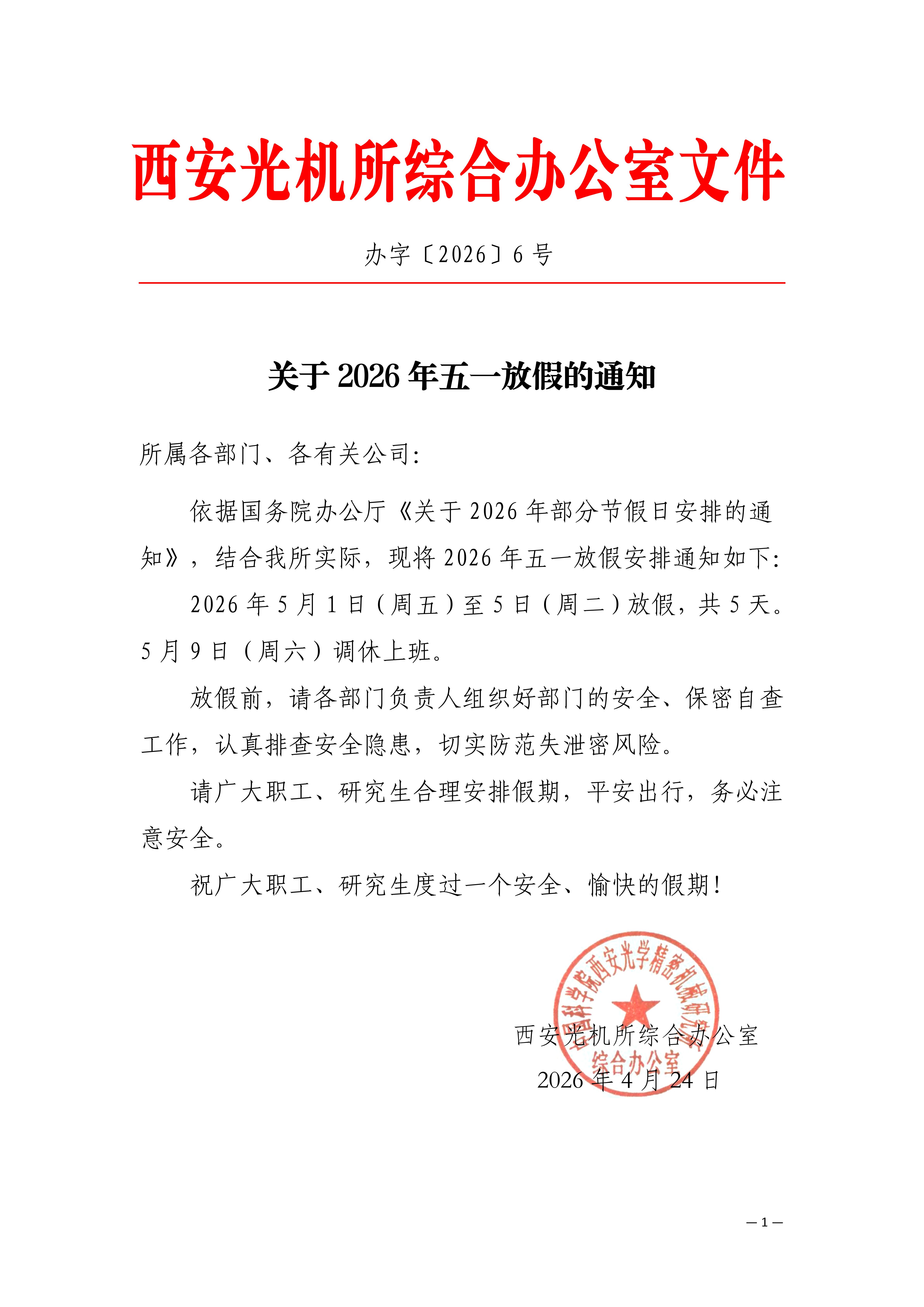 关于2026年五一放假的通知