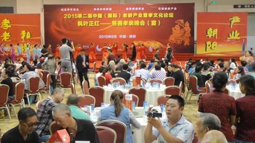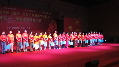 2015年第二届枫叶正红------千人慈善孝亲晚宴隆重举行。9月11日,由西安市老龄产业协会主办,陕西德荣健康管理有限公司承办的“2015第二届枫叶正红------千人慈善孝亲晚宴暨最美孝子评选颁奖晚会”在西安高新区绿地笔克国际会展中心温馨举行。本次活动以弘扬“孝文化”为核心,旨在唤起全社会对老年群体的关注,让更多个人及企业加入到践行“孝文化”的队伍,促进全社会形成孝老、爱老、助老的浓厚氛围,为构建繁荣、文明、富裕、和谐的大家庭提供强大精神动力和文化支撑。