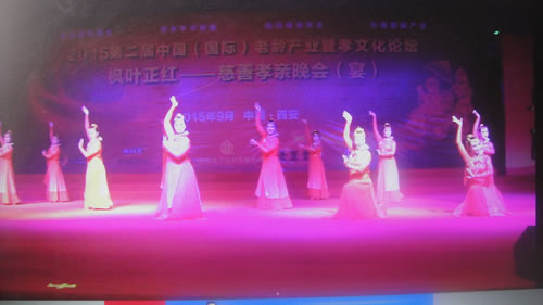 西安光机所老年大学阳光艺术团在2015第二届“慈善”千叟宴上展现舞蹈鸿姿