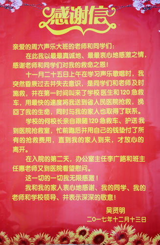 冬季是各种老年疾病的高发季节,为了提高全体学员的健康水平,健康意识、防病能力,西安光机所老年大学组织4名医护人员连续在老年大学进行了一个半月的健康义诊和咨询活动。对学校五大领域、33个专业、146个教学班、3000多人次学员进行了一般状况问诊、生命体征检测及健康知识宣教等义诊活动。根据诊疗结果将学员的健康状况进行分类管理、专科指导,并建立了学员健康档案。对患有心脑血管疾病的学员进行健康宣教,嘱其按时服药,定时监测血压、血糖、血脂,并改善不良生活方式,保持病情稳定。针对检查出来的40多名血压在180/100mmHg以上的极高危患者进行了特别妥善的处置,及时转往专科医院进行进一步诊疗,直至血压稳定,避免了不良心脑血管意外的发生。副校长李广路还带领教职工作人员前往医院进行探望了解病情。许多学员非常感谢学校为他们提供的健康义诊活动,有位学员住院回来感激的给学校送来了锦旗及感谢信,以表达感谢之情,她跟家属及身边的朋友说,在西安光机所老年大学不仅收获了知识、友谊,还收获了健康及关爱。