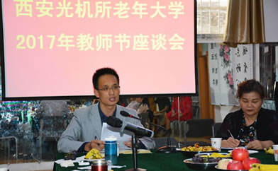 西安光机所老年大学分校召开2017年教师节座谈会为庆祝全校师生共同期待的教师节,在2017教师节来临之际,西安光机所老年大学分校在友谊路园区离退休活动中心召开教师节师生座谈会。分校名誉校长寇...2017-09-14