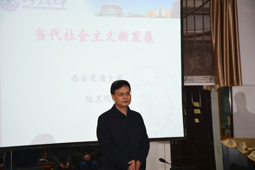 为了让广大离退休党员更加深入学习领会十九大报告精神,12月13日上午,所离退休党总支特别邀请西安交通大学马克思主义学院政治学与行政学系主任、马克思主义研究所所长、博士生导师陆卫明教授,在友谊路园区离退休职工活动大厅做了一场题为《当代社会主义新发展》的专题辅导报告。离退休党总支全体委员,离退休6个党支部的支部书记及委员,离退办全体工作人员、离退休党员职工等120余人参加了专题学习,本次也是党员第六次集中学习十九大报告有关内容。离退休党总支书记、离退办主任李广路主持会议。