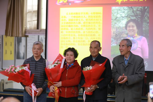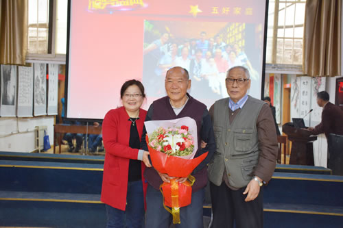 离退休第四党支部书记解兴惠同志宣读了《关于表彰五好家庭、阳光老人、爱心有为老人、五好丈夫/媳妇/儿女的通知》,获奖者分别是:五好家庭孙长安家庭;阳光快乐老人2人梁茂丹、徐洁璇 ;五好丈夫李佑国;五好媳妇 李俊英;五好儿女张俊芳的子女。随即进行了隆重的表彰仪式,所老领导及嘉宾上台为他们献上了鲜花。