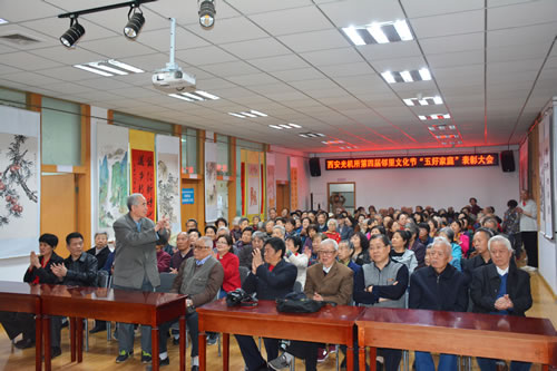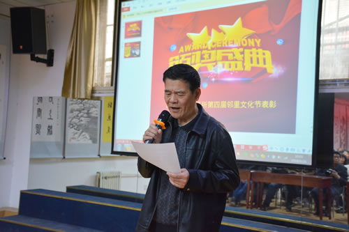 离退休第三党支部书记徐毅梅宣读了“第四届邻里文化节有奖征文”获奖名单:一等奖《让邻里成为好朋友》作者时惠霞 ,二等奖《说说社区一段情》作者储立永,《西光社区暖人心》作者董烈棣,薛建德、张汉科、张帮录、李佑国创作的作品《相依为命 年老更关爱》《对门》《邻里相望》《讴歌光机所》分别获得三等奖。第四届邻里文化节在盛大的颁奖典礼中徐徐落下帷幕。