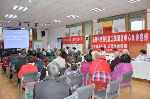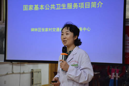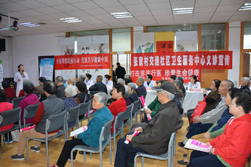 活动于上午8:20开始,首先由交通社区中心黎晓主任为大家讲解国家公共卫生服务项目和惠民政策,包括社区中心的职能、传染病和突发公卫事件报告与处理、居民健康档案、健康教育、预防接种、儿童健康管理、孕产妇健康管理、老年人健康管理、慢性病患者健康管理、严重精神障碍患者管理、卫生计生监督协管、中医药健康管理、肺结核患者管理等。这些项目全部免费,由政府买单,为辖区群众提供健康服务。现场还组织发放了各种传染病、慢性病知识宣传画册数百份。