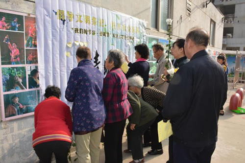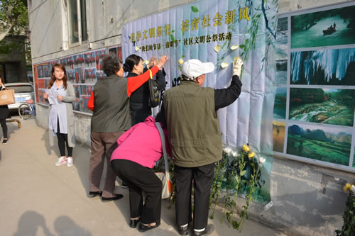 清明节是中华民族缅怀先烈、祭奠逝者、寄托哀思的传统节日。直到今天,清明节祭拜祖先、悼念已逝亲人的习俗仍然很盛行,倡导鲜花祭祀等文明祭祀方式,是新时代移风易俗的好方式。活动现场,许多离退休职工家属对文明祭祀宣传活动表现出了极大热忱。老同志们一边看宣传单页,一边听社区工作人员宣读倡议书:一是文明祭祀,提倡用鲜花、植树、清扫墓碑等方式。二是科学祭祀,提倡科学意识,摒弃焚烧纸钱、冥币等愚昧落后的祭奠方式。三是环保祭祀,树立环保意识,不在大街小巷等公众场所烧纸钱,做到不污染环境。四是节俭祭祀,遵守社会公德,崇尚尊老传统美德,树立厚养薄葬的新观念。五是安全祭祀,严格有关防火规定,不违规用火,杜绝各种不安全隐患的发生。接下来,大家在社区工作人员的引导下通过书写哀思、敬献花朵等简短的祭奠活动,寄托了对革命先烈和逝者亲属的哀思。大家非常赞同这种文明的祭祀方式, 并表示都愿意为倡导社会新风做出更多努力。