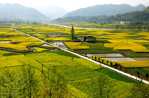 在陕西勉县,今年灿烂如金的油菜花海又现人间,15万亩油菜花在山野梯田间恣意生长,与白墙黛瓦的村舍相映成趣,在龙湾的花田中,黄绿相间的五个大字“勉县欢迎您”夺人眼球,一望无垠的油菜花田正在成为勉县富民强县的“软黄金”。经营农家乐的农户,每到油菜花盛开的季节就是他们一年最忙碌的时刻。“去年三四月份,这儿的停车场都满了,你看,这怎么都得有百十辆来车吧。”黄家沟村共200多户,其中约有一半的人参与到了农家乐的经营中,去年全村农民人均纯收入达21800元,发展休闲观光农业已经成为黄家沟村致富的主导产业。勉县县委书记马大勇说,勉县以花为媒,发展乡村旅游,推动县域经济发展,去年接待旅游人数680万人次,旅游收入达32亿元。油菜花带来的经济效应不仅仅局限于花开的时节,也不仅仅受制于这座秦岭深处的小小县城。一位76岁的老婆婆向我们诉说着一辈子头一回遇上了这么好的年景,特别感恩人民领袖习近平。