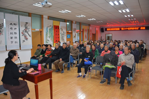 为了迎接第23个世界读书日的到来,活跃离退休人员精神生活,搭建读书交流平台,营造积极向上的园区文化氛围,4月16日上午所老年读书协会在离退休职工活动中心举办“阅读越乐 悦读越雅”世界读书日专题活动。特别邀请到了西安电子科技大学人文学院赵淑珍教授为大家做了题为《读书与老年生活》的专题讲座。老年读书爱好者150余人参加了活动,老年读书协会会长相宝林主持大会。