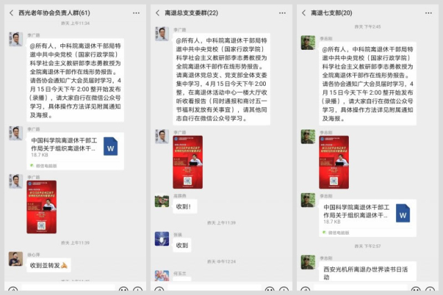 西安光机所离退休党总支组织党员职工听取在线形势报告会