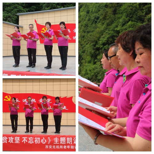 6月12日,西安光机所老年朗诵协会来到陕西商洛市柞水县小岭镇金米村,在这里举办了《脱贫攻坚 不忘初心》主题朗诵会,并实地参观“打赢脱贫攻坚战”后的乡村新貌。所老年朗诵协会会长孙阿娣、副会长王芳共同策划主持本次主题活动。
