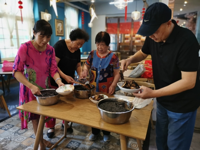 西安光机所老年厨艺协会学做西安特色小吃“甑糕”