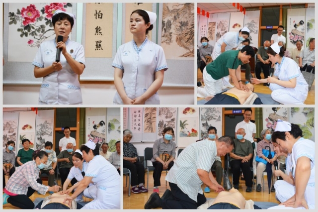 活动于上午8:30开始,老同志们提前到场,自觉排队测量血糖和血压,耐心等待专家的检查和诊治。9点整,心内二科护士长解翠为大家细致讲解了心肺复苏的重要意义、操作步骤和技术要领,主管护师杜维耐心仔细地为大家演示和讲解实操过程,她们又逐一指导老同志亲身实践心肺复苏完整流程,大家学到了实用的医学急救技能。