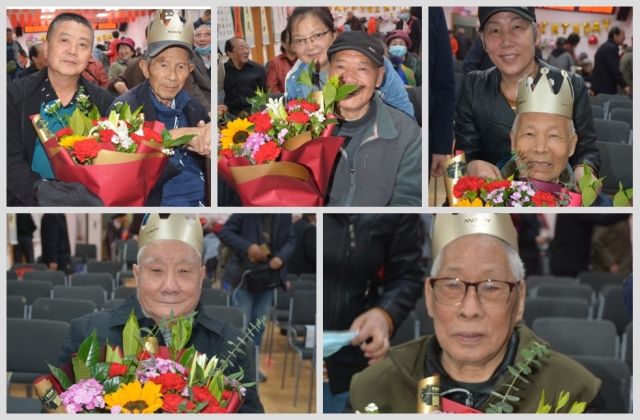 最后,离退休7个党支部的支部书记、委员及骨干同志们为在场的七位90岁以上高龄的老寿星献上了盛开的鲜花,伴随着《生日快乐》歌的悠扬乐曲,一份份精美甜蜜的蛋糕也送到了现场的七位老寿星和所有参会的老同志手中,幸福的笑容洋溢在每个人的脸上。