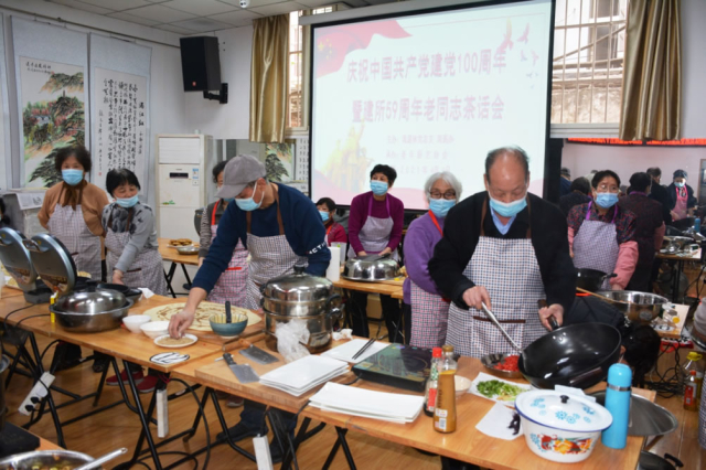 茶话会上,西安光机所老年厨艺协会应邀在现场进行厨艺展示活动并借此向大家汇报协会成立三年来的厨艺学习成果。此次展示活动注重面向家庭餐桌,美食项目主要以各类家常小吃为主,品种包括西安特色小吃甑糕、回坊美食牛肉粉蒸肉、香酥肉饼、荷叶饼粉蒸肉、肉丸胡辣汤、香葱咸点、核桃酥饼、韭菜盒子、油饼、蒸饺、油酥芝麻大饼、五彩麻食等十多道美食。活动期间所老年厨艺协会的会员表示,中国共产党即将迎来百年华诞,今天我们所展示和制作的美食既是献给伟大的党百年生日的礼物,也是以美食的形式表达我们对曾为国家科技事业的进步和研究所的发展做出了突出贡献的老专家和老领导的敬意和感谢。随后在欢快与轻松的气氛中,大家品尝了厨艺协会会员所展示和制作的美食作品,对协会会员高超的厨艺水平给予了充分的肯定,并对所老年厨艺协会在丰富老同志的文化生活,助力和提升老同志的生活品味等方面所发挥的作用给予了积极的评价。