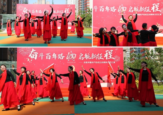 文艺汇演以一首威武雄壮的歌曲《没有共产党就没有新中国》拉开序幕,整场演出以中国共产党建党百年历程为脉络,分为序幕、开天辟地、长征、抗日战争、解放战争、新中国成立、抗美援朝、建设新中国、改革开放、社会主义现代化建设新征程、尾声等11个篇章,共22个节目,以歌唱、舞蹈、朗诵、模特、情景剧的形式重温了中国共产党的百年辉煌历史,歌颂了党的不朽功勋。此次演出,主持人以不同革命时期标志性的历史事件把节目串联起来,使整台演出浑然一体。演员们身着不同革命时期的服装,精神饱满的展示他们自编自导的文艺节目,从南湖红船到井冈山会师,从遵义古城到革命圣地延安,从三大战役到天安门城楼,从三中全会到十九大,一步一步走来,是党带领全国各族人民披荆斩棘一路向前,不断取得一个又一个胜利,230多位演员和台下观众一起尽情欢歌,歌颂伟大的中国共产党,唱出他们心中的爱党爱国之情。