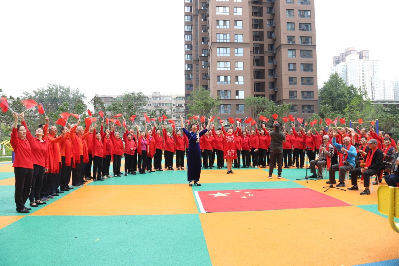 “一条大河波浪宽,风吹稻花香两岸”…… 10点整,随着乐队的伴奏旋律响起,离退休职工及家属100余人一同唱响《我的祖国》。大家挥舞着红旗,跟随节奏一起吟唱,响亮的歌声中每个音符都饱含着内心对祖国的深情祝福,祝福祖国繁荣昌盛,人民幸福安康。现场不论是三四岁的孩童,还是七八十岁的老人,都激情满怀地以这种方式为新中国庆生,自豪之情溢于言表。