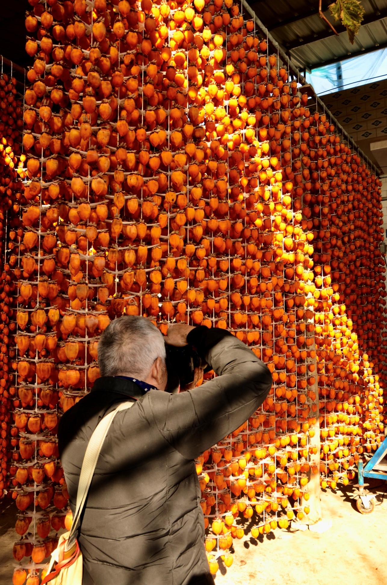 2021年11月17日清晨,云淡风轻,天朗气爽,西安光机所老年摄影协会一行30余人在离退办的组织下,迎着初冬的朝阳,乘车前往远近闻名“中国柿乡,富庶太平”的柿子之乡——富平县曹村镇进行“金秋曹村 柿在必行”摄影创作采风活动。 地处富平县北部的曹村镇、马坡村种植柿子历史悠久。那棵千岁树龄的“柿寿星”和千棵百年老柿树,已经成为曹村镇的标识名片。过去,村民们守着聚宝盆,过着穷日子。在改革开放,脱贫攻坚、乡村振兴战略的时代大潮中,曹村镇成立了柿业合作社,着力发展柿子产业,建立柿业基地,打造风情小镇,硬是把柿子树变成摇钱树,把绿水青山变成金山银山。柿子红了,日子火了!每逢霜降节气,开始柿子采摘晾晒及柿饼制作,举办农业观光体验“曹村尖柿节”。这是曹村最美最忙最热闹的时光。当一串串、一排排,外形尖圆,甜味十足的火红柿高高挂起,就为秋天唱响了赞歌,为乡亲带来了希望,为村庄平添了风光。 由于疫情原因,协会很久未能外出活动,大家都格外珍惜这次柿乡之行。一路欢歌笑语,临近柿乡就感到浓郁的柿子风情扑面而来。下车后,大家一吐带口罩的憋闷,一扫新冠的阴霾,畅快呼吸乡村的清新空气,迅速捕捉眼中的诗情画意。扫视四野,枯叶铺地,已错过了满树红柿的采摘时节。走进一户户农家,那一面面红彤彤,金灿灿,高高挂起的柿子,立马使人眼睛一亮。大家纷纷选择拍摄角度,频按快门,唯恐再错过这迷人的美景。几位八旬老者为获取最佳效果,不惜半蹲或跪地仰拍,身手敏捷,动作娴熟,丝毫没有老胳膊老腿的垂暮之气。说来神奇,摄影竟使一群退休老人身强体健,青春焕发,培养了共同的兴趣爱好和精神寄托。大家把祖国山河当学校,把田间地头当课堂,结伴而行,边走边拍,交流切磋,互相学习,享受着寄情山水,陶冶情操的快乐,感悟着快乐如此简单,快乐就在身边的人生真谛。 踏着“柿柿如意”拾级而上,来到“千年古村柿寿星”祈福广场,只见一棵沧桑大树昂首挺立,红带飘舞,边墙上两个福寿大字格外醒目。大家在这块风水宝地上构思创作,拍照合影,不亦乐乎! 不觉日当正午,大家又依次参观了研学体验地陶艺村和中华郡园区,从中国历史和传统文化中吸取思想营养和创作灵感,提高审美情趣和摄影技艺。