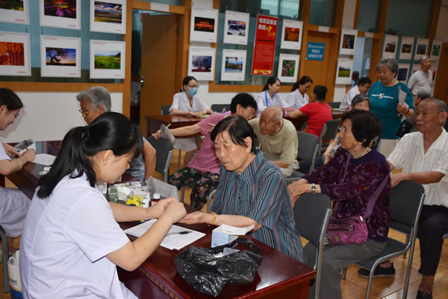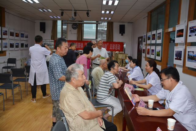 活动于上午8:20开始,老同志们早早到场,自觉排队测量血糖和血压,眼底镜检查处也排起长长的队伍,耐心等待检查。他们根据自己的身体情况,来到不同科室的专家处进行疾病诊治和健康咨询。心内科、肾内科、骨科等各科专家细心询问,仔细检查,热心为每位咨询者讲解疾病病因、防护措施、治疗方法等。解除了老同志们心里的疑惑,让他们感到非常满意。