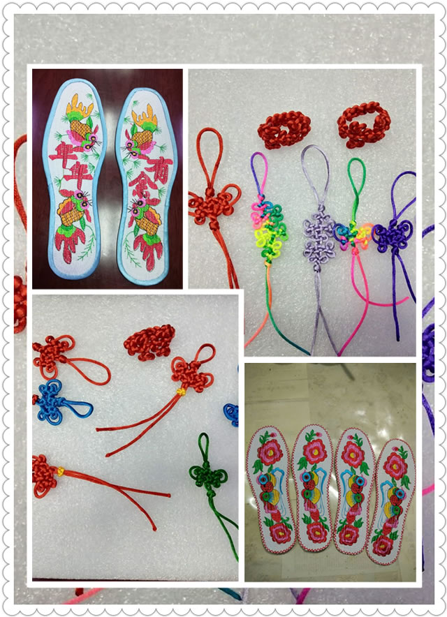 扎一对鞋垫、结一束绳结,传统技艺搭起一座鹊桥,期盼牛郎织女浪漫相遇!七夕乞巧,这个节日起源于汉代,有“汉彩女常以七月七日穿七孔针开襟楼,人俱习之”的记载,有“阑珊星斗缀珠光,七夕宫娥乞巧忙”的诗文。且这一习俗在民间经久不衰,代代延续。协会会长王玉珍与副会长汪琳从七夕前就开始置办手工物品,针、线、布料、绳结等,经过大家十余天的制作,每人都在董老师的教授下完成了精致的手工作品。展示会上能妇巧手们互相欣赏着绣出的“花好月圆”“百年好合”“心心相印”字样的爱心鞋垫,端详着疏落有致的同心绳结,引起大家对传统技艺的赞叹和共鸣,在美的艺术中感受中华传统艺术的博大精深。