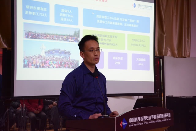会上,李广路向大家全面详细的汇报了2018年度的离退休管理服务工作,报告主要包括九个方面:一是做好离退休职工政治思想工作,充分利用支部活动、主题报告、大小集会等平台,开展专题教育、红色教育等主题活动,教育引导离退休同志始终保持党员本色,坚定理想信念,影响和带动周围群众坚定不移地跟党走,在政治上思想上行动上同以习近平同志为核心的党中央保持高度一致。二是做好离退休职工来信来访工作,维护老同志切身利益,及时妥善解决合理诉求,倾听心声,增进互信,推动理性表达。三是做好离退休职工重点关怀工作,常年开展家庭走访、医院探视、困难帮扶、关注特殊人群,全力以赴不落下任何一位困难无养的老同志。四是做好离退休职工健康关爱工作,通过宣传栏、健康讲座等方式加强健康保健知识宣传,组织四次大型健康义诊活动,常年开展健康咨询、理疗、测量血糖血压等活动,以预防为主,倡导健康的生活方式。构建了健康关爱体系,促进了老同志身心健康,提升了预防治疗疾病的意识和能力。五是营造丰富多彩的离退休文化生活,依托24个老年文体协会,充分调动离退休老干部政治优势、经验优势、威望优势,开展了极富特色的各类文体娱乐活动,讲好中国故事、弘扬中国精神、传播中国好声音,推动园区职工群众培育和践行社会主义核心价值观。六是办好西安光机所老年大学,推行“五加二”“白加黑”工作模式,重视学校安全健康工作,完善各项管理制度,按照全国老年大学示范学校的标准管理要求自我,推动学校的制度化、规划化、标准化发展。七是办好职工后事处理工作,及时细致办理各种手续、组织吊唁慰问告别、协调办理抚恤金等事宜。八是维护职工利益促进稳定和谐,积极配合有关部门共同做好离退休职工两项待遇的落实工作,联合街道办事处、科研社区、民政部门办理帮困、助残、抚恤等惠老政策。九是适度宣传展示离退休职工精神风貌,向光明网、老年报、老年周刊、院网、所网等各类媒体媒介展示特色活动,做重大活动的宣传报道,充分展示我所老同志积极向上的精神风貌。李广路最后感谢研究所党政领导对离退休工作的高度重视,感谢全所离退休职工、离退休各支部、24个老年文体协会对离退休工作给予的包容理解及鼎力支持。整场报告内容详实、层次清晰,全场老同志不时为精彩内容喝彩,为斐然成绩鼓掌。