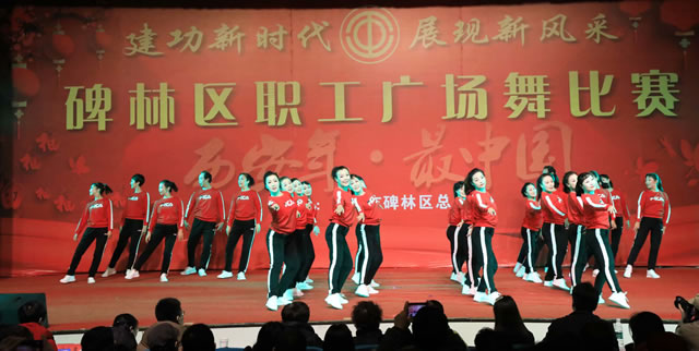 近几月来碑林区各街道、委局工会广泛开展了广场舞竞赛活动,参与群众达万余人次,经过层层选拔和淘汰,来自各基层工会的16支代表队脱颖而出,参与最终角逐,当天近千名演员参加了全区总决赛。各代表队竞相登场,精彩纷呈,集中展示了职工团结拼搏、奋发向上的精神风貌。
