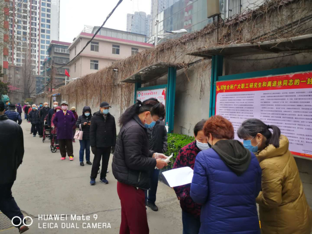 3月6日上午,离退休党总支书记、离退办主任李广路,离退休党总支副书记高薛燕,离退休第一支部书记陈中仁,离退休第三支部书记王萍,离退休第四支部书记解兴惠,离退休第五支部书记张瑛,离退休第六支部书记贺建安、委员周金平及李建园,离退休第七支部书记李志刚、委员吕金玲等,分两个批次在研究所友谊路园区南北生活区,现场维持秩序,依次排队发放。离退休老同志们自觉间隔1米距离,有序行进,领取口罩。