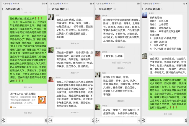 2020年4月23日是第25个世界读书日,今年的世界读书日注定是一个与以往不一样的、独一无二的世界读书日。4月23日晚7点,应西安光机所离退休老年读书协会特别邀请,西安医学院文学教研室安玮娜副教授为大家做了题为《瘟疫文学中的疾病隐喻与伦理选择》的视频分享会。老年读书爱好者约100人在线聆听了视频会。老年读书协会会长刘小玲主持视频会。