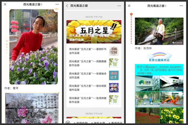 为持续深入推进正能量活动开展,离退办发起、二十多个老年文体协会积极响应,联合开展了以“展示阳光心态、体验美好生活、畅谈发展变化”为主题的“西光离退五月之星”展示暨评选活动。活动涌现出了一大批积极踊跃的先进典型,凝聚了广大离退休老干部不忘初心、砥砺奋进的强大正能量。