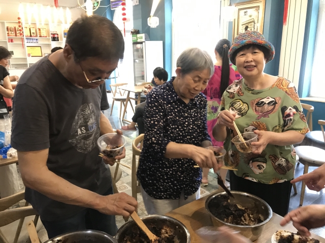 西安光机所老年厨艺协会学做西安特色小吃“甑糕”