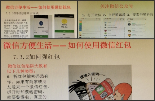 今年年初至7月中旬,离退办张静同志根据老同志需求陆续制作图文并茂的“智能手机基础培训”PPT,并教授了四期现场培训课程。她从智能手机的基本操作内容开始讲解,逐步过渡到微信等生活和社交实用热门应用程序,以“一步一图”方式对每个操作进行详细讲解,直观的图片演示和详尽的操作指导,让现场接受培训的老同志一看就明白,一听就清楚,学习体验显得非常轻松、高效。