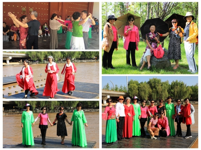 是日,雨后天晴,阳光和煦,气温适宜。大家一路欢声笑语,来到水街,近观远眺,地阔天蓝,小桥流水,绿树成荫,飞鸟起落,画在景中落,人在画中游,她们即兴翩跹起舞,驻足拍照留念,捕捉美好瞬间,心情格外舒畅。桥上留下了她们爽朗自信的欢笑,水中倒映了她们欢乐清澈的舞姿,河边留下了她们团结和谐的合影。