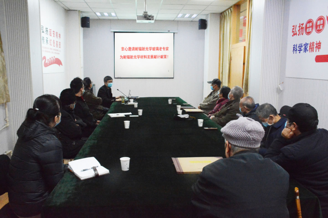 1月20日上午,应研究所先进光电与生物材料研究室辐射防护材料学科发展带头人王鹏飞研究员的特别邀请,建所初期耐辐射光学玻璃学科领域的老一辈专家,如陈邹生、潘晚成、董新意、程科华、郭嫦娥、马明训等光学玻璃研制熔炼专家,以及我所老年科技工作者协会李育林、周金平、陈中仁等老领导等10余人,出席了在友谊路园区离退休第一会议室的恳谈会,为研究所材料学科振兴规划建言献策,共同助推我所材料学科辐射防护耐辐照玻璃材料研制能力的提升与发展工作。材料室王鹏飞研究员、离退办李广路主任共同主持会议。