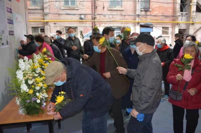 清明节是中华民族缅怀先烈、祭奠逝者、追思故人的传统节日。直到今天,清明节祭拜祖先、悼念已逝亲人的习俗仍然很盛行,倡导绿色、文明、低碳、节俭的现代殡葬祭扫新风,是新时代移风易俗的好方式。活动现场,老同志们认真聆听了社区工作人员宣读的倡议书:一是错峰祭扫,安全出行。二是保护环境,文明祭祀。三是厚养礼葬,节俭治丧。四是移风易俗,传承美德 。接下来,大家还共同回顾了“全国卫生健康系统新冠肺炎疫情防控工作先进个人”李文亮的先进事迹。随后大家在社区工作人员的引导下通过书写哀思、敬献花朵等简短的祭奠活动,寄托了对革命先烈和逝者亲属的哀思。