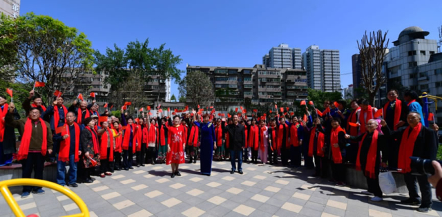 “唱支山歌给党听,我把党来比母亲。母亲只生了我的身,党的光辉照我心……”, 在《唱支山歌给党听》主题快闪演唱活动主现场,闻讯而来的人们随着熟悉的旋律边走边唱。年过花甲的老人,天真烂漫的孩子,他们身戴红色围巾手持小红旗,让绿荫广场变成了一片红色的海洋,大家放声歌唱,用歌声表达对中国共产党的深深祝福。