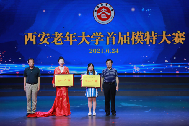 为庆祝中国共产党成立100周年,6月24日下午,西安老年大学在西安广电中心石榴花剧场成功举办首届模特大赛,全市各分校400余师生共同观看比赛,现场气氛热烈。14个参赛队各展风采,西安光机所老年大学模特队以出色的表演斩获一等奖:“金牡丹奖”。