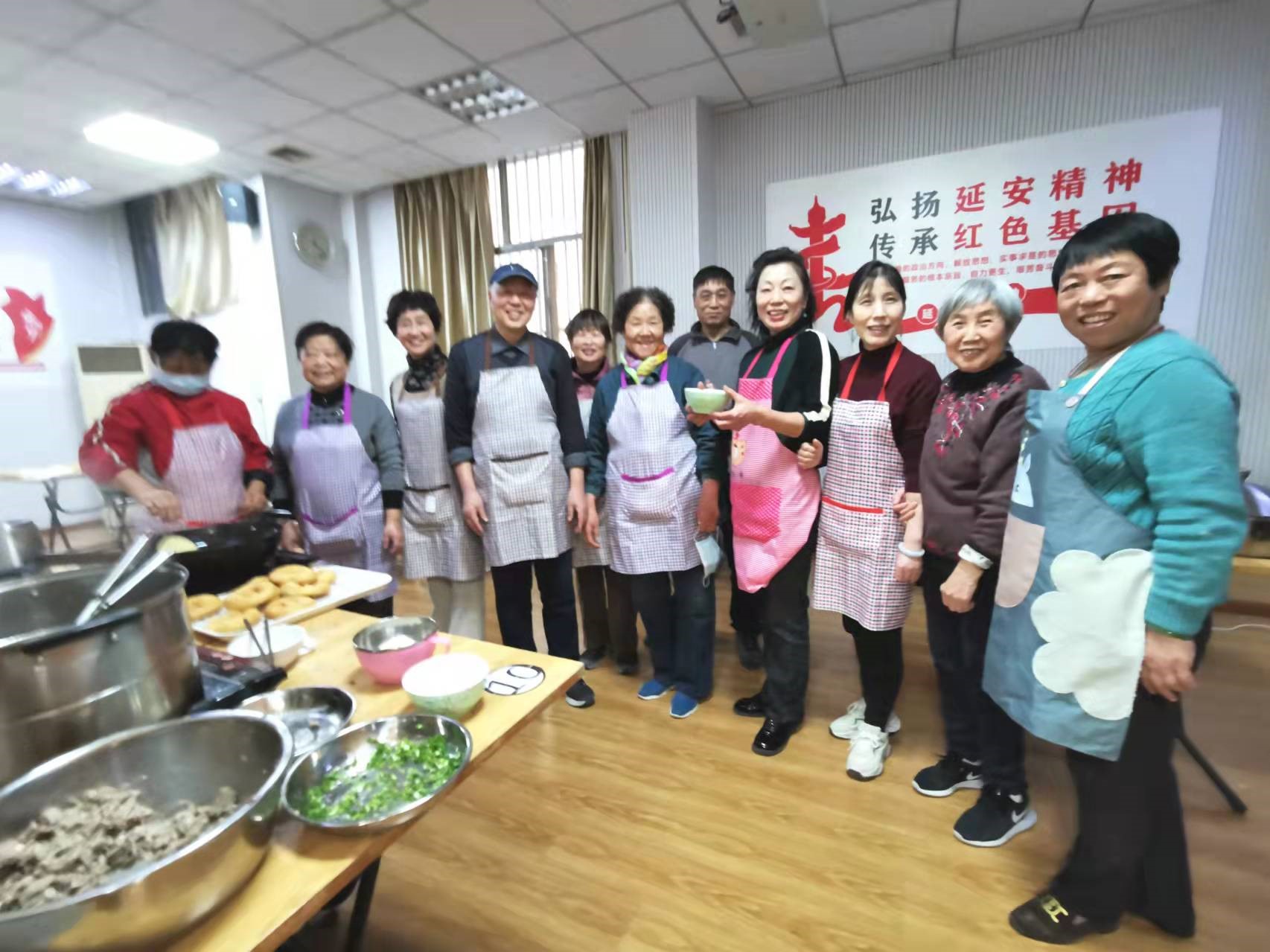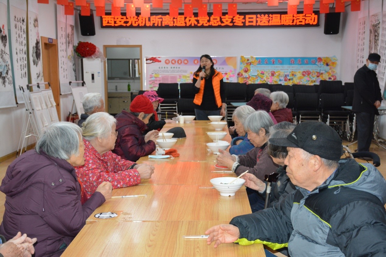 所离退休党总支书记、离退办主任陈桂萍在活动开始时讲了话,她说这次活动是我们贯彻党的十九届六中全会精神而组织开展的系列活动中的一项内容,就是要把党的关怀、党的温暖通过我们的努力送给所有需要关注的人群,由于疫情防控工作的要求,我们不能把更多需要关爱的老同志请到会场来,但是我们一定会继续努力,全力以赴地认真做好全所离退休老同志的服务工作。随后陈桂萍、高薛燕以及部分党支部书记为大家端上一碗碗热气腾腾的羊肉面以及炸油饼和葱油大饼等美食。当大家品味到这香气四溢的美食时,老同志们的心情特别激动,一种家的温馨和冬日的温暖油然而至,一些老同志表示虽然我们是失独或独居老人,但却一直沐浴在党的关怀的阳光下,使我们感觉并不孤独,我们的生活始终充满着光彩和幸福,还有的老同志当场赋诗表达了对党的感激之情。
