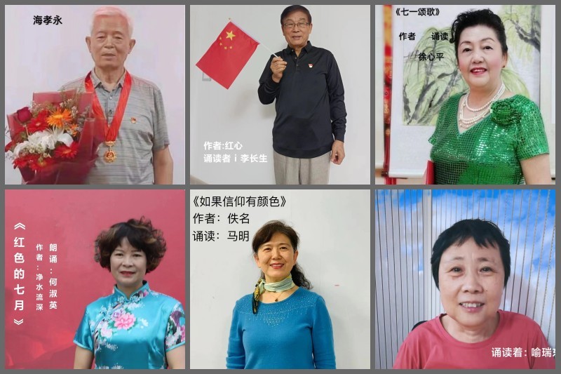 “七一”前夕,为热烈庆祝中国共产党成立101周年,喜迎党的二十大胜利召开,由离退休党总支主办,老年朗诵协会承办的“喜迎二十大 七一颂党恩”主题网络诵读活动如期举行,老年朗诵协会会长孙阿娣、王芳策划组织。