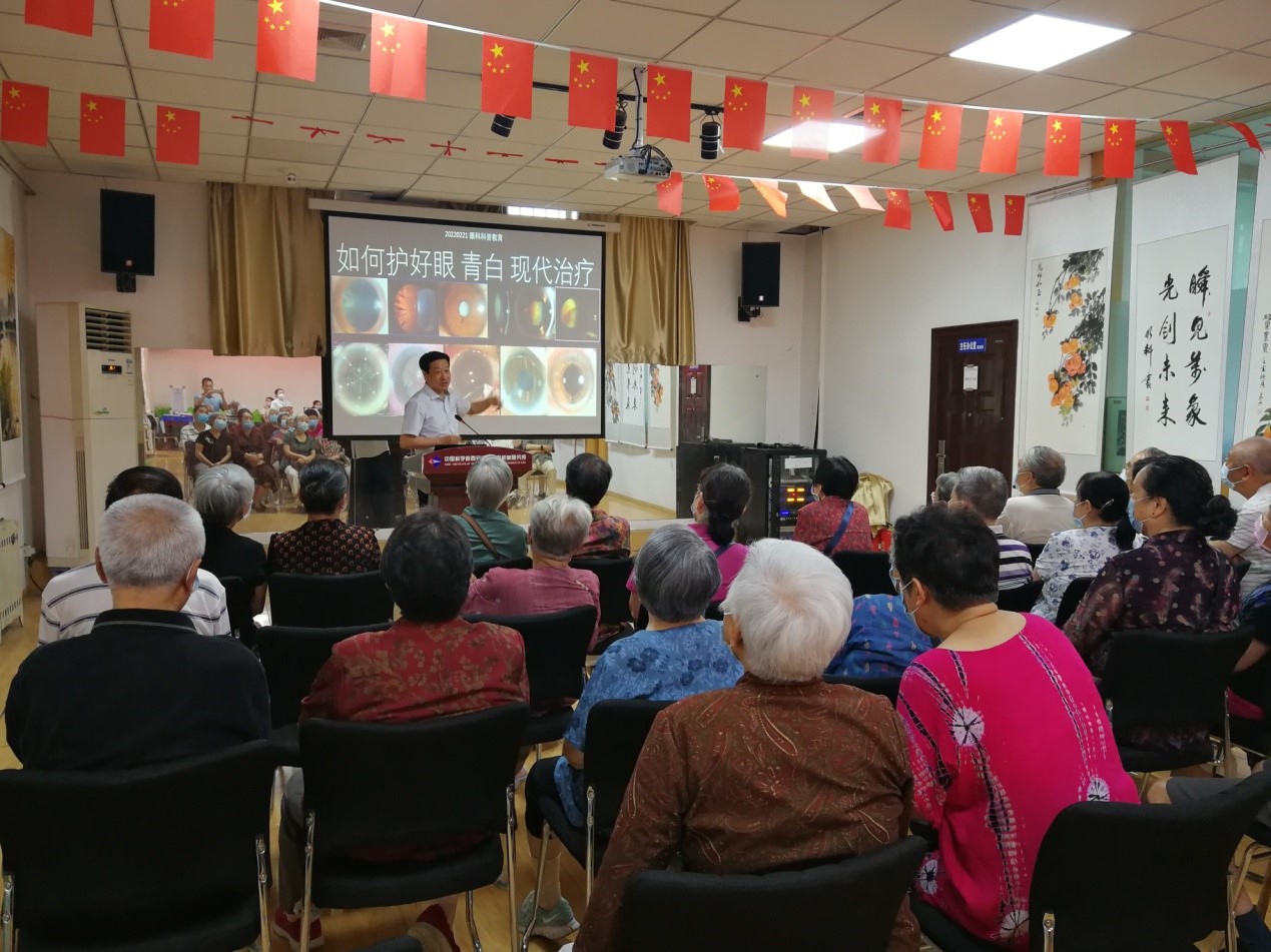 随着互联网的普及和年龄的增长,各种老年眼科疾病逐步增多。为提高老同志眼睛保健意识,了解眼科疾病的防治知识,方便离退休职工、家属及老年大学学员对眼部疾病诊治咨询的需求。7月20日上午,离退办特邀西安爱尔眼科医院院长郝燕生教授领衔的专家组来所做报告,医院派出了主任医师、主治医师、检验师、护师8人组成的专家组,在研究所友谊路园区离退休职工活动中心为大家作健康报告和义诊咨询,约330人次离退休职工、家属及老年大学学员亲临现场,聆听讲座、诊疗咨询。