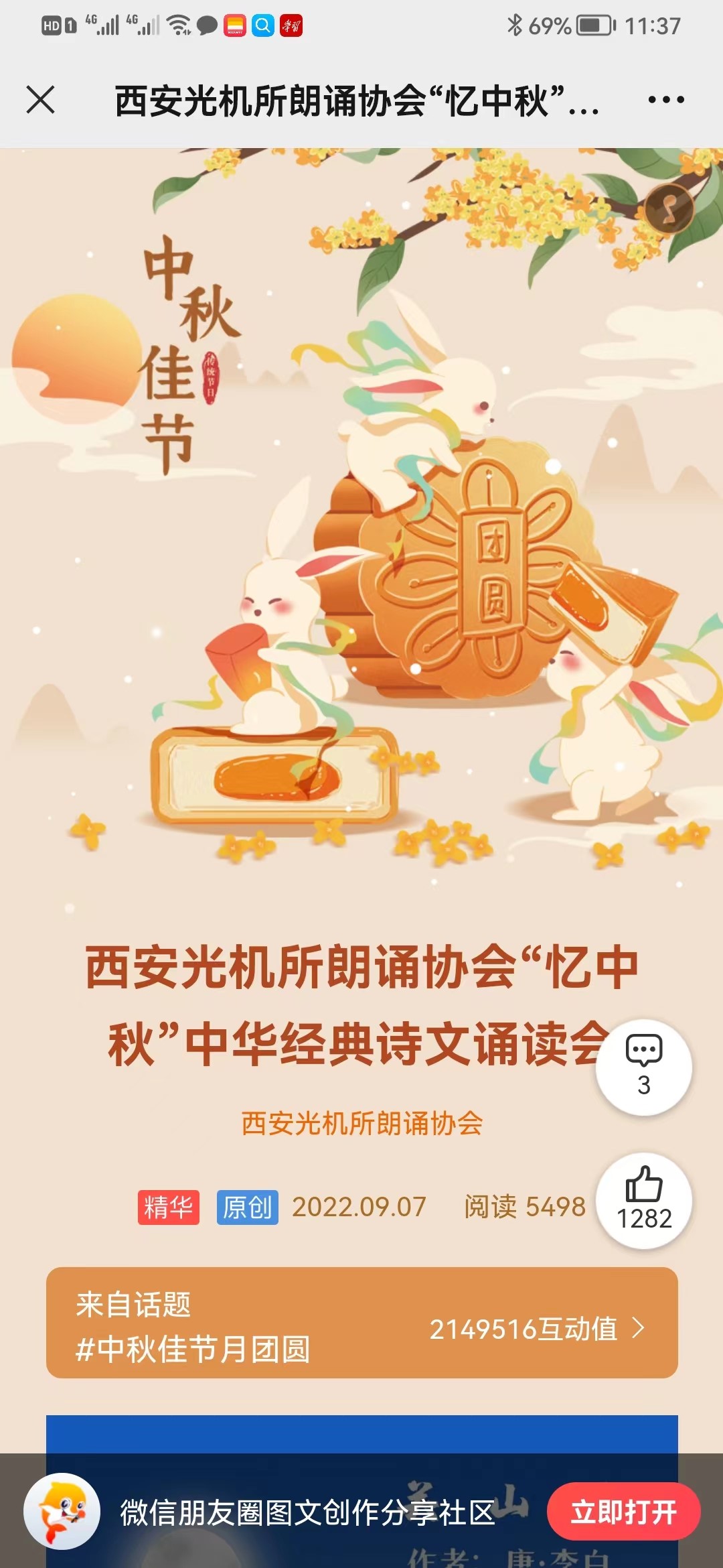 西安光机所老年朗诵协会开展“忆中秋”经典诗文云端诵读活动