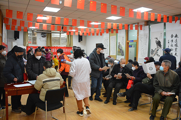 深冬来临,为增强老同志新冠防护意识,提高防护能力,进一步做好我所疫情防控工作,方便所内离退休职工及家属接种新冠疫苗, 2023年1月12日上午,西安光机所离退办特邀陕西省交通医院医疗组来所,开展健康体检、健康咨询和新冠疫苗接种活动。160多位离退休职工和家属参加,注射疫苗30多人次。