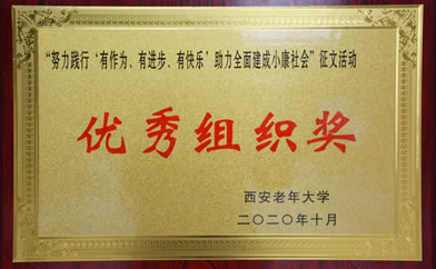 西安光机所组织离退休职工参加西安市老年大学总校征文获佳绩近日从西安市老年大学总校获悉,我所离退办和老年大学在参加“努力践行‘有作为、有进步、有快乐’全面建成小康社会” 征文活动中荣获“优秀组织奖”称号...2020-12-08