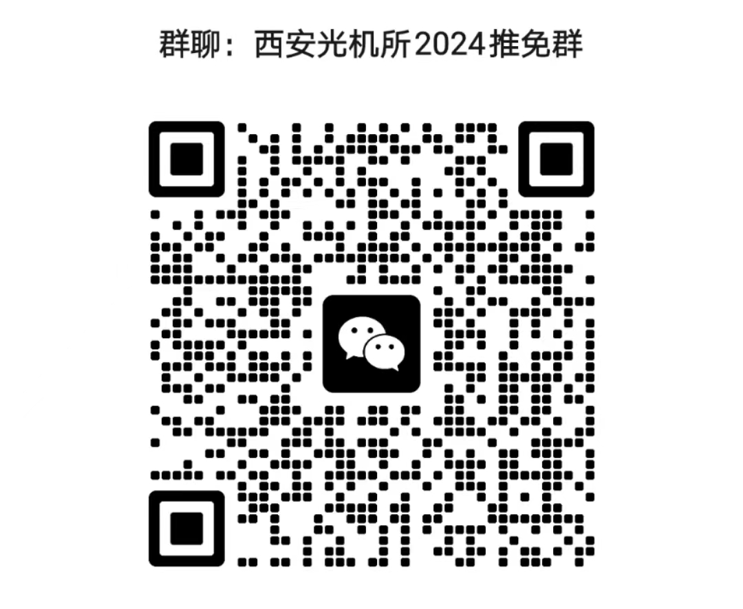 2023年9月27日9:00开始面试,确认参加面试的考生请于9月25日24:00前发送“姓名+参加复试”至hnyang@opt.ac.cn,并扫描下方二维码进入西安光机所2024推免群。