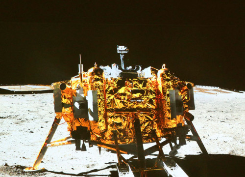 “玉兔”号月球车上的全景相机拍摄的嫦娥三号着陆器