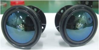 避障相机也是由左右两个相机组成,固联于巡视器车体围栏下方,其作用是对行进中所遇的障碍物进行识别,帮助巡视器绕开。(避障相机光学系统是一个超低畸变鱼眼光学镜头,它具有近半球视场、f-θ畸变小,相对照度均匀,全视场像质优良、轻小型化等特点)。