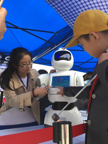 在这次科普展中,高科技产品齐亮相,吸引了参展的各行业观众和众多小朋友的眼球。西安光机所OSA/SPIE学生分会科普团队的同学们为参加展会公众介绍我所的科技产品,包括宾果机器人、晶像3D投影仪、手持夜像仪、投影式红外血管成像仪、高功率半导体激光器、仿生骨、梦之墨、散射镜片、光路元件等产品。在活动现场,公众热情高涨,家长和小朋友对科学产品兴趣浓厚,追根问底寻求原理,科普团队研究生对大家答疑解惑,开启了孩子们创新的心扉,唤起了学生的创新意识,带领公众一起走进这场规模盛大的科学节。